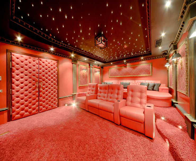 Home cinema, also called home theaters or theater rooms, are home entertainment audio-visual systems that seek to reproduce a movie theater experience and mood using consumer electronics-grade video and audio equipment that is set up in a room or backyard of a private home.